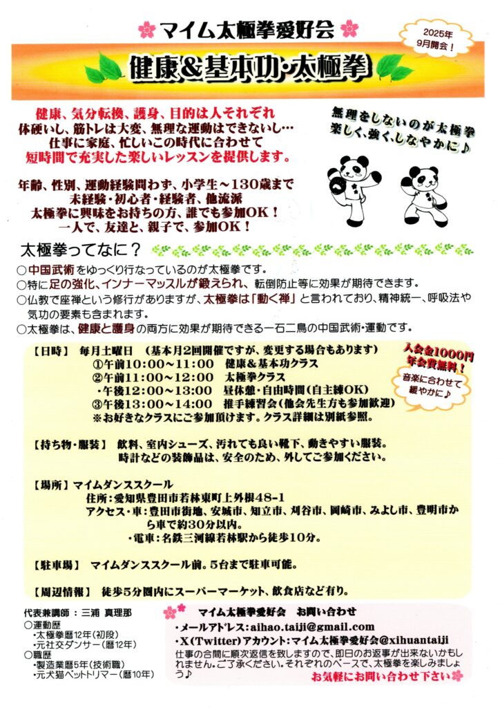 X(Twitter)「マイム太極拳愛好会@xihuantaiji」「ココア愛@cocoalove2019」、ジモティ、趣味ナビ!にも詳細掲載中♪